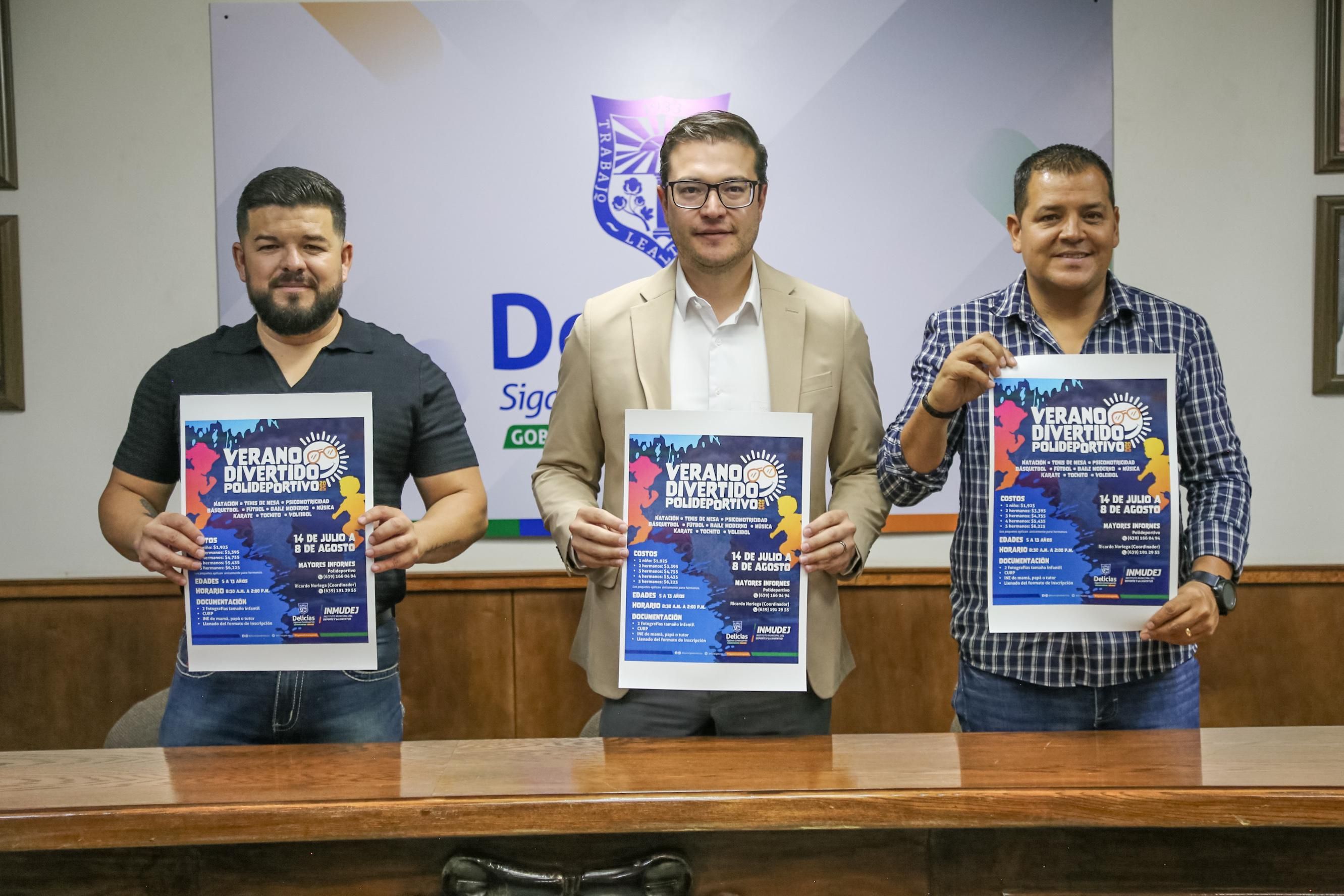 El Gobierno Municipal de Delicias, a través del Instituto Municipal del Deporte y la Juventud (INMUDEJ), presentó oficialmente el campamento “Verano Divertido Polideportivo 2025”, dirigido a niñas y niños de entre 5 y 13 años. La rueda de prensa fue encabezada por el director del INMUDEJ, Miguel Aguirre, y el regidor Mario Alberto Mata Licón, encargado de despacho, en las instalaciones de Cabildo.