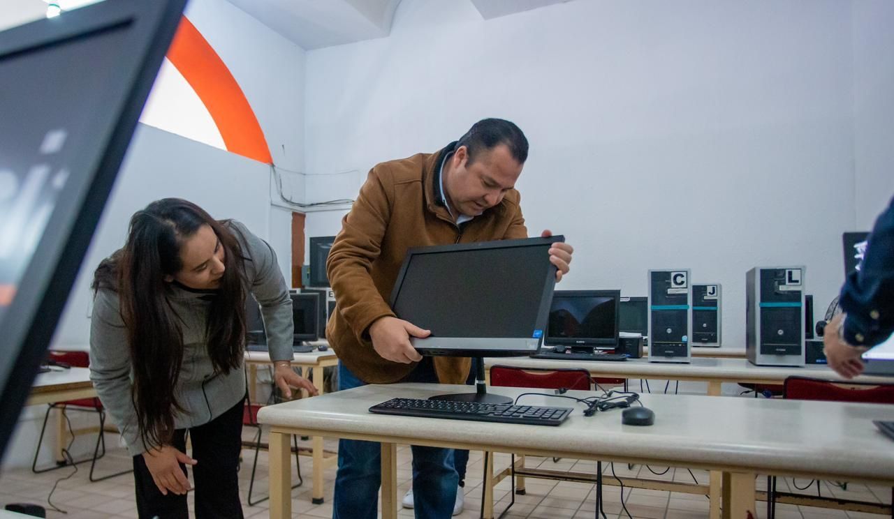Los trabajos en la biblioteca Emiliano Zapata, ubicada en avenida Segunda Sur, consistieron en la reparación de goteras, reacondicionamiento de paredes e instalación de los equipos de cómputo, entre otros trabajos de mantenimiento de dicha biblioteca, mismos que buscarán replicarse en otros espacios que así lo requieran, puntualizó el Edil.