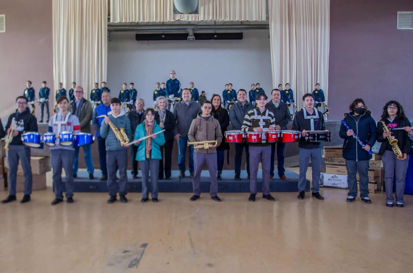 ENTREGA VALENCIANO INSTRUMENTOS PARA MARCHING BAND EN PREPA 20-30.