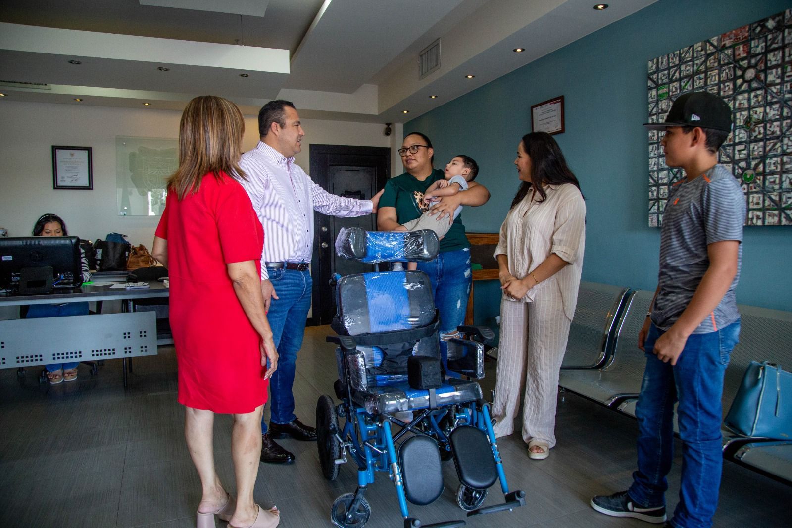 Juan Mateo y su madre, Jessica Ruiz, recibió la silla de manos del presidente municipal. La madre expresó su gratitud, señalando que esta ayuda será de gran utilidad para poder transportar a su hijo de manera más cómoda y segura, ya que antes debía llevarlo en brazos para todas sus actividades.