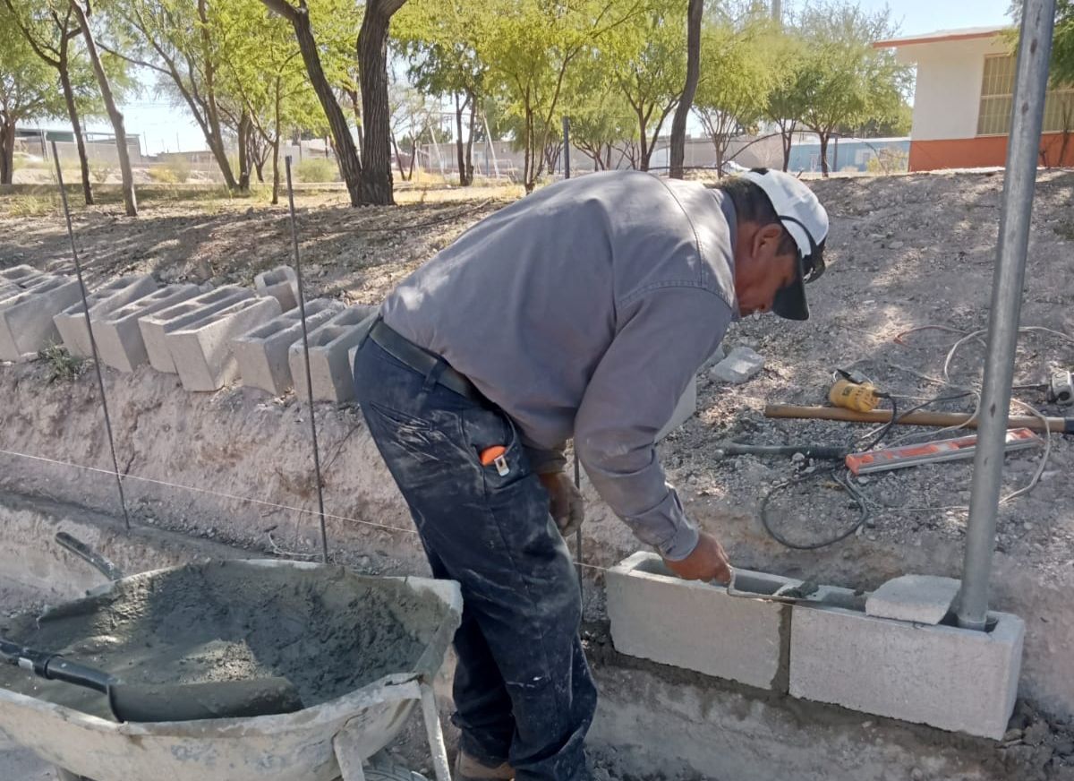 En atención a la petición hecha al Presidente Municipal, Jesús Valenciano, por parte de la directora de la escuela Primaria Federal “Carmen Serdán”, personal de Servicios Públicos Municipales trabaja en el levantamiento de la barda perimetral.